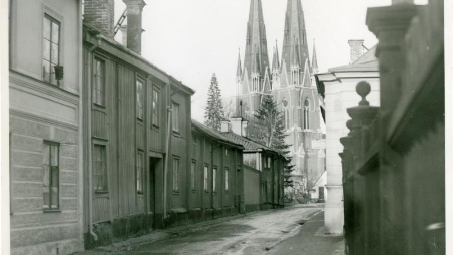 Tidigare fanns här delar av Uppsalas äldsta bebyggelse eftersom detta område klarade sig från de tidigare stora stadsbränderna